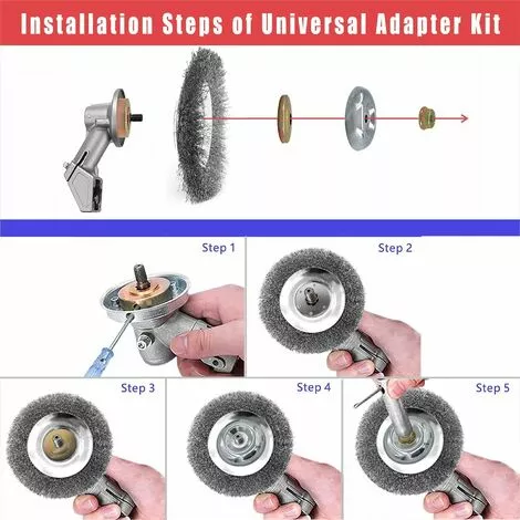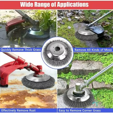 Fonctions multiples : L’accessoire de débroussailleuse pour débroussailleuse n’est pas seulement destiné au désherbage, mais également à l’élimination de la rouille, à l’ébavurage, au nettoyage et au polissage des accessoires. Il convient à la plupart des taille-bordures standard à arbres droits.
