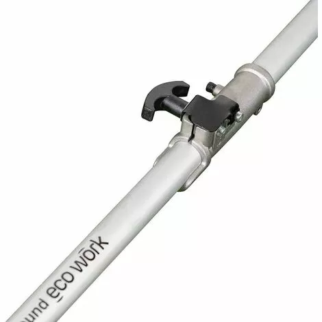 Après avoir parlé du moteur, nous ne pouvions pas oublier la transmission de puissance de la débroussailleuse Eco Work. Il est équipé d’un mât en aluminium de haute qualité et résistant, d’une épaisseur de 26 mm, pour maintenir l’utilisateur stable et équilibré à tout moment pendant l’utilisation. Le guidon à position centrale offrira également une sécurité totale grâce à son ergonomie et à son adaptation à la poignée. Il est doté d’un raccord rapide au centre, de sorte que la machine peut être facilement démontée et stockée ou transportée divisée.