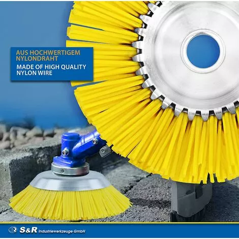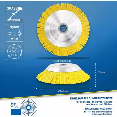 Tête Débroussailleuse Brosse de désherbage en nylon de 200 mm pour débroussailleuse pour usage contre mauvaises herbes. Ne provoque pas d’étincelles et n’abime pas les surfaces