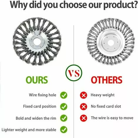 6. Les trous de fixation fixes et fils de la carte sont conçus pour empêcher le fil de se déplacer pendant l’utilisation et augmentent la résistance à l’usure des fils d’acier à ressorts lourds, adapté pour nettoyer les bords de la route, sur la pierre.Coudre, brique, coin et plancher, éliminer le sol, enlever la saleté tenace, etc.