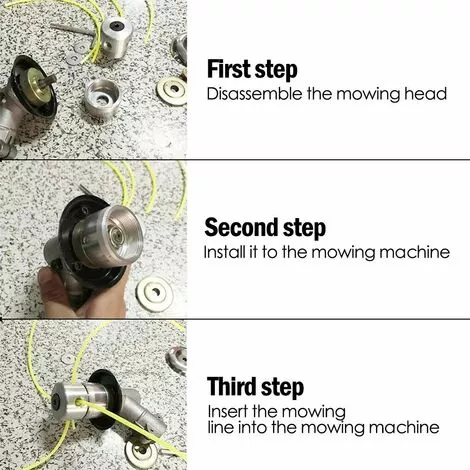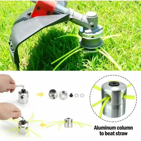 Application : la tête de débroussailleuse s’adapte à toutes les débroussailleuses courantes, tondeuses à gazon à gauche et est idéale pour tondre et désherber.