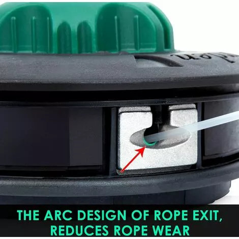 Alignez les œillets. Enfilez le fil de la tête à travers un œillet et laissez-le ressortir de l’autre côté jusqu’à ce que vous ayez deux bords de même longueur. Tournez le bouton moulé dans le sens antihoraire. La tête est prête à l’emploi.