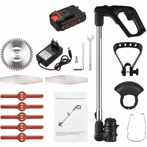 Tondeuse à gazon électrique multifonction — Équipée d’une lame en plastique, d’une lame en acier inoxydable et d’une lame de scie circulaire en acier au manganèse, cette tondeuse à gazon portable convient à la coupe de l’herbe douce, à l’entretien de la pelouse, à la tonte de l’herbe dans la pelouse du jardin, à la coupe des arbustes avec de petites mauvaises herbes et à l’élagage des branches , et etc.