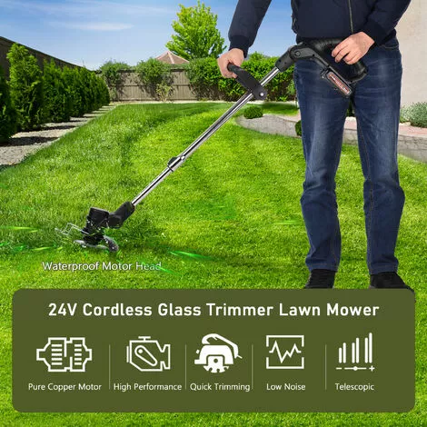 Tige télescopique, design ergonomique – La tige télescopique le rend pratique pour les personnes de différentes hauteurs. La poignée auxiliaire est amovible et réglable. Housse de protection pour une utilisation en toute sécurité et pour éviter les éclaboussures d’herbe. La tête de moteur silencieuse et étanche est facile à laver.