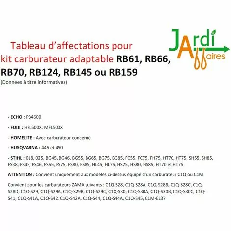 JARDIAFFAIRES Kit Carburateur Adaptable Remplace Zama RB-61/66/70 Et RB145
