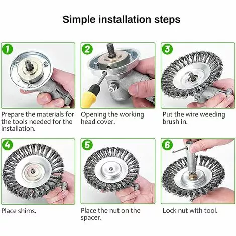 2.【Facile à utiliser】Cette brosse de désherbage professionnelle peut être installée et retirée rapidement. Installez la brosse sur la tondeuse à gazon et démarrez-la comme d’habitude. Le raccordement de la tondeuse à gazon est simple et pratique. La brosse à roue métallique est faite de fil d’acier noué, il est donc plus sûr de tondre l’herbe avec la brosse qu’avec le couteau
