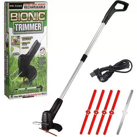 Accessoires du produit : câble USB, tondeuse à gazon améliorée, lame en acier inoxydable, tube télescopique en aluminium, verrou d’herbe, hôte,