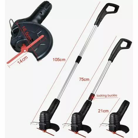 Design ergonomique : cette tondeuse à gazon est conçue avec un manche télescopique, facile à régler en longueur, et la longueur réglable est de 1 à 30 cm ; elle vous permet de couper l’herbe dans un petit espace sans vous pencher, et la tondeuse à gazon offre un expérience plus confortable.