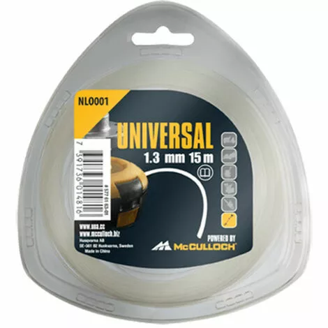 Ligne de coupe Universal – Accessoire d’origine de qualité McCulloch éprouvée : Le fil de nylon Universal est idéal pour tailler le gazon et les broussailles en toute tranquillité. Grâce à une technologie brevetée, les pousses, les chardons et même l’herbe dure sont coupés proprement et, surtout, sans bruit. Le fil de coupe est en nylon résistant et durable.