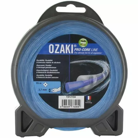 Coque fil nylon OZAKI PRO-CORE LINE. Co-extrudé âme absorbante (flexibilité) et enveloppe haute resistance (longévité) à forme helicoidale (réduction du bruit) – Longueur: 15 m, Ø: 2,70mm.