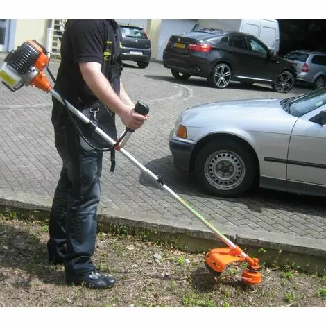 Un moteur 2 temps s’occupe de vous donner toute la puissance nécessaire à vos travaux. Un coupe-bordures et une lame sont inclus, ainsi qu’un harnais pour votre sécurité et afin de travailler de façon plus ergonomique et moins fatiguante. En effet, le poids de la machine est alors réparti sur vos épaules, plutôt qu’entièrement sur vos avants-bras.