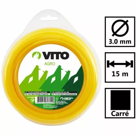 Fil nylon carré pour débroussailleuse. Le fil mesure 15m pour 3mm de diamètre. S’adapte à tous les modèles de débroussailleuse.
